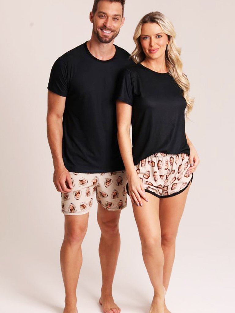 Short Casal Personalizado Com Foto Bege