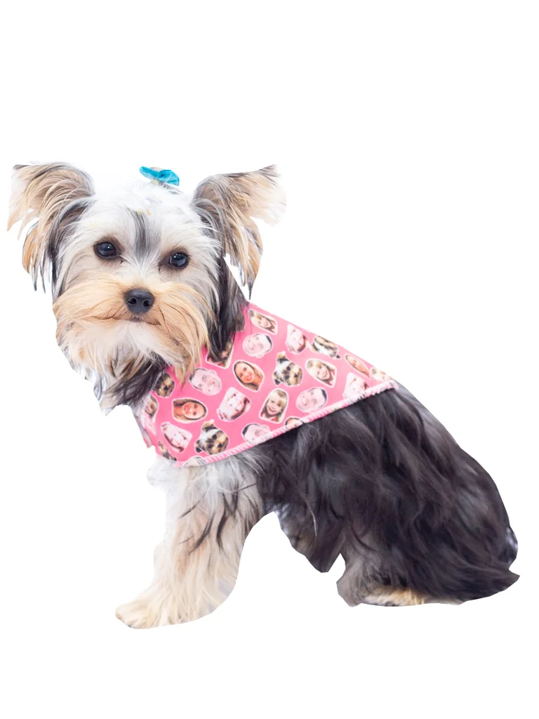 Esta bandana foi projetada especialmente para gatos e cães, possui diversas opções de tamanhos e estampas coloridas, e você escolhe a foto pra personalizar. Ela é confortável, resistente à lavagem e não desbota facilmente. Levemente peluciada por dentro e o fechamento é com botão.