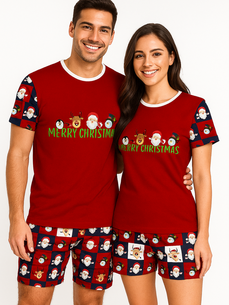 Produzidos em tecido macio, leve e confortável, os pijamas trazem estampa natalina clássica com renas, flocos de neve e pinheiros em vermelho, verde e branco. Perfeitos para viver momentos aconchegantes em família, registrar fotos inesquecíveis e entrar no clima natalino com muito estilo.