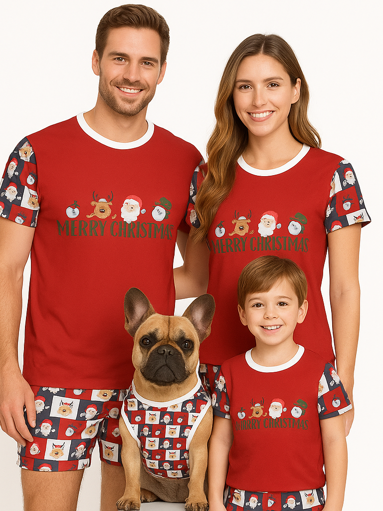 Kit Pijamas Natalinos Família – Casal + Infantil + Pet