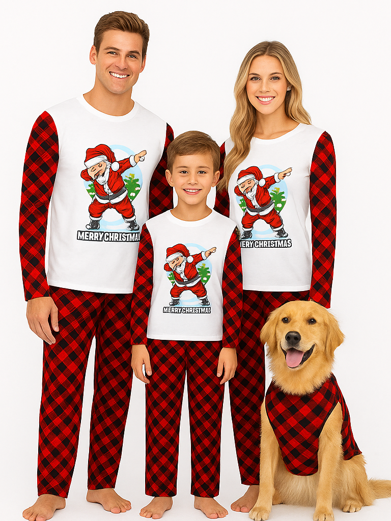 Kit Pijamas Natalinos Família – Casal + Infantil + Pet