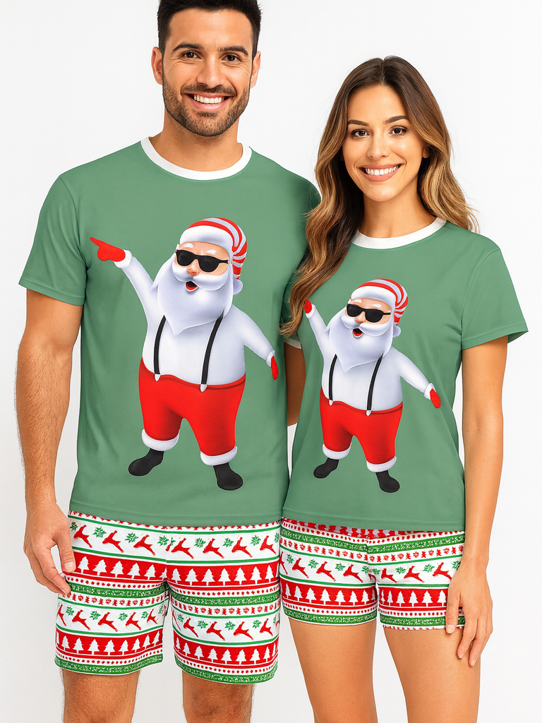 Pijama Divertido Natal Feminino Verão Natal Dabbing