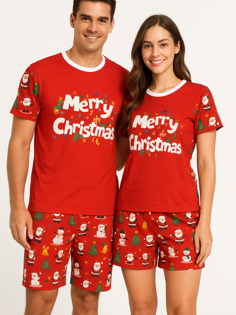Produzidos em tecido macio, leve e confortável, os pijamas trazem estampa natalina clássica com renas, flocos de neve e pinheiros em vermelho, verde e branco. Perfeitos para viver momentos aconchegantes em família, registrar fotos inesquecíveis e entrar no clima natalino com muito estilo.