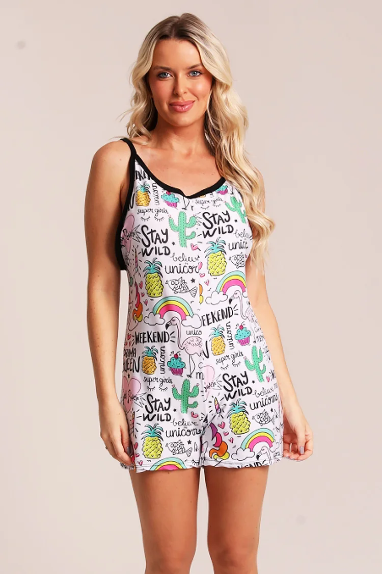 Esse macaquinho feminino é a definição de praticidade com charme! Confeccionado em tecido macio e confortável, ⭐ ele traz estampas alegres e divertidas, cheias de cor e personalidade, perfeitas para deixar qualquer momento mais leve.😍
