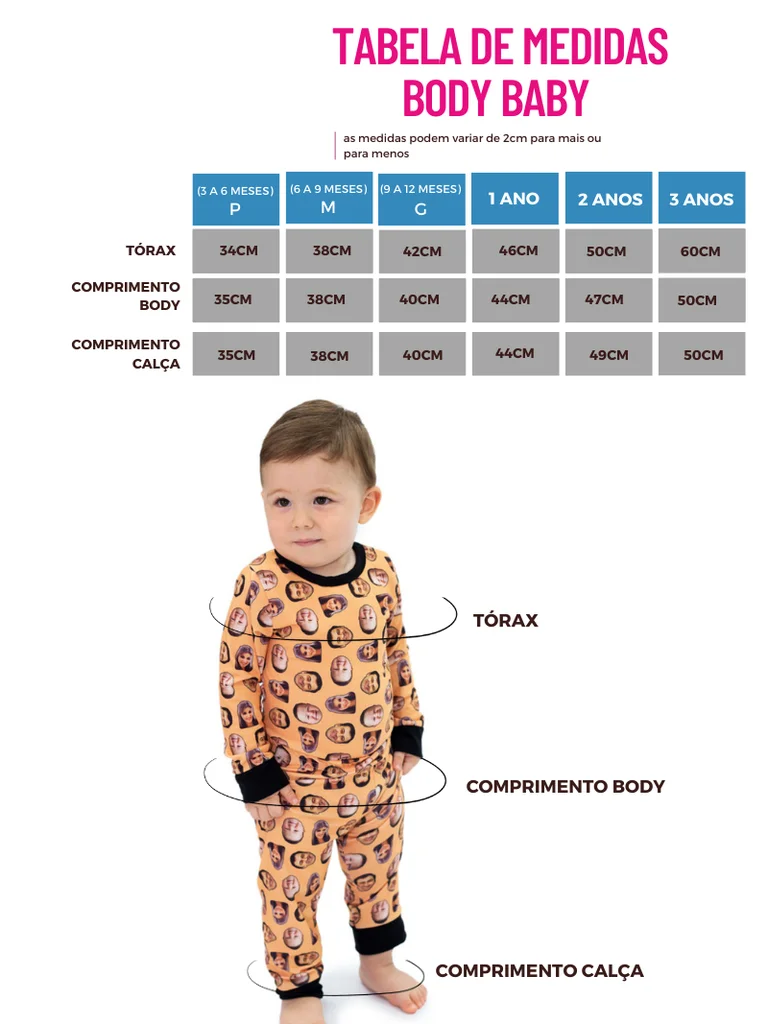 Nossos pijamas são feitos com malha macia e resistente, proporcionando maior conforto. Com tecnologias avançadas de impressão, as imagens das fotos possuem uma excelente qualidade na impressão que não desbotam facilmente após lavagens frequentes. Com nitidez das imagens você vai curtir cada momento em seu lar. A modelagem é unissex, confortável todos bebês.