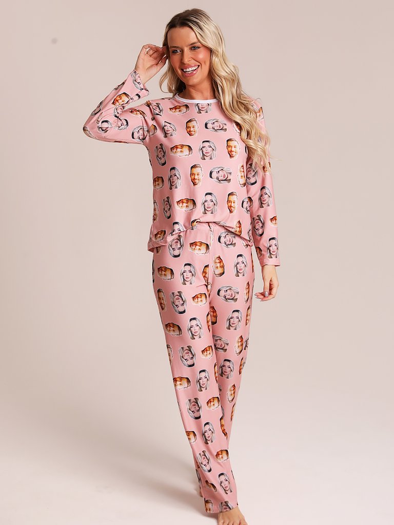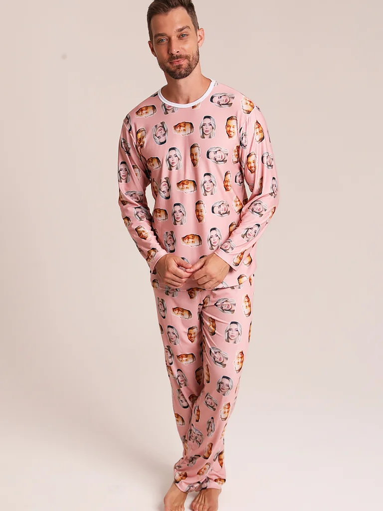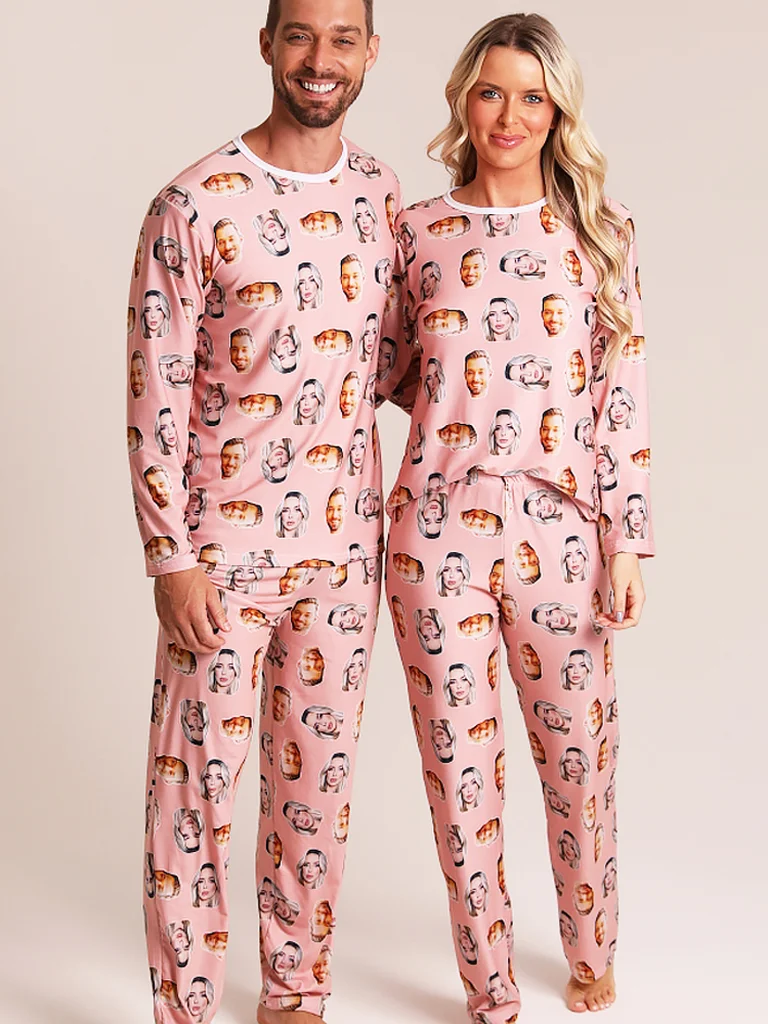 Pijama Casal Personalizado Com Foto Inverno Rosa Salmão
