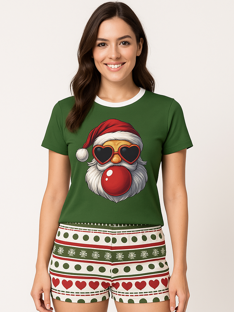 Pijama Feminino Natal Coração Pop Verão