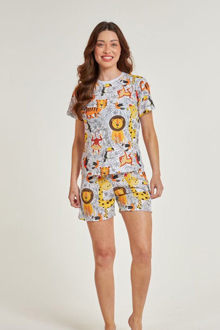 Com estampas cheias de leões, tigres, girafas e macacos, esse modelo é pura alegria e promete transformar o momento de dormir em uma verdadeira aventura em família! 🦁✨