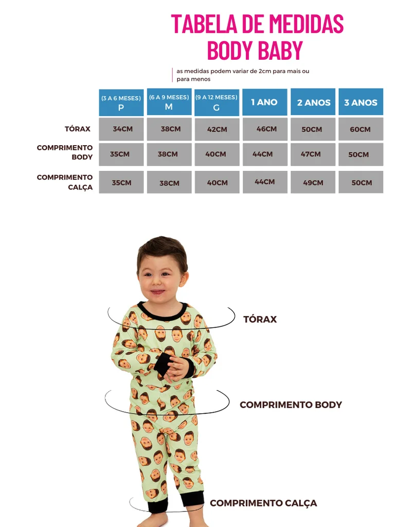 Nossos pijamas são feitos com malha macia e resistente, proporcionando maior conforto. Com tecnologias avançadas de impressão, as imagens das fotos possuem uma excelente qualidade na impressão que não desbotam facilmente após lavagens frequentes. Com nitidez das imagens você vai curtir cada momento em seu lar. A modelagem é unissex, confortável todos bebês.