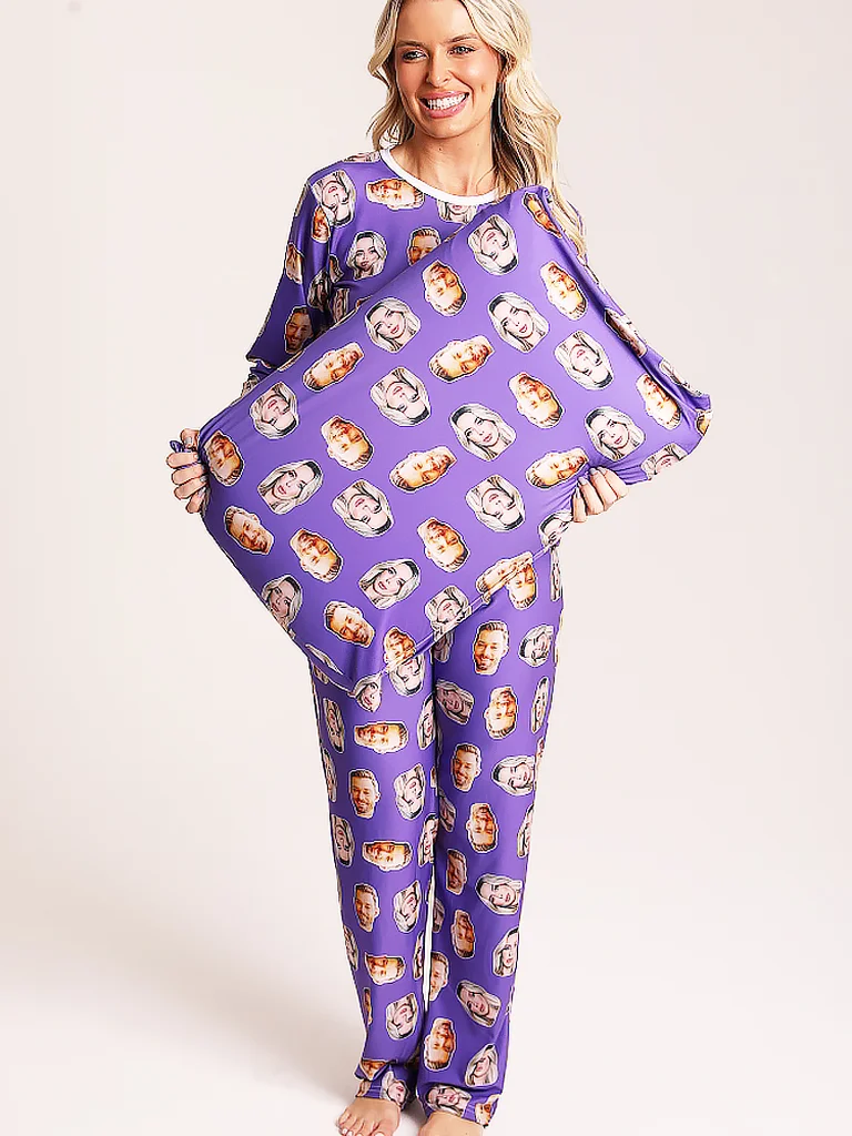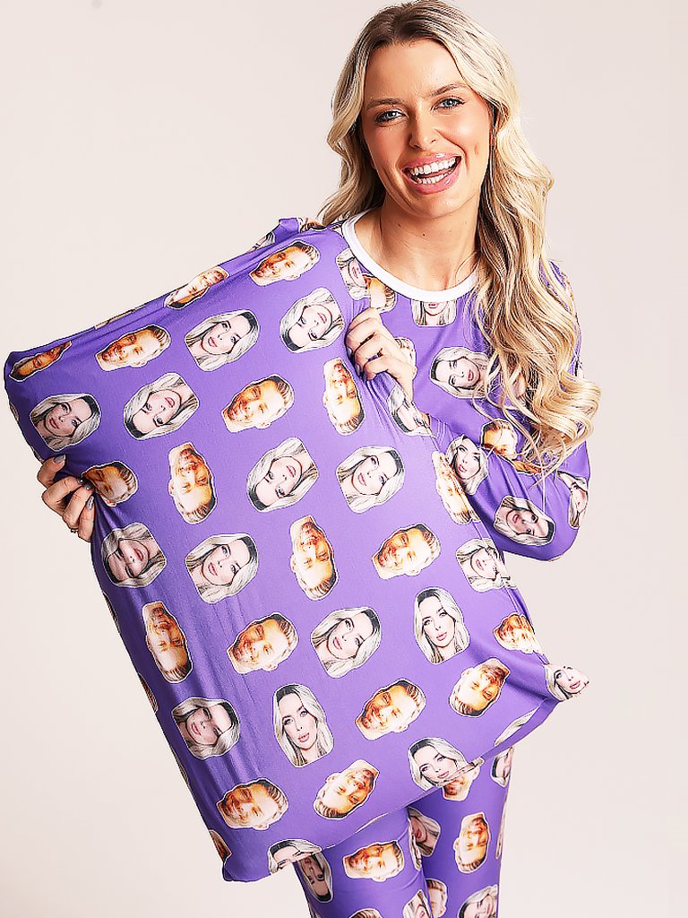 Kit Feminino Personalizado Pijama Inverno + Fronha Roxo
