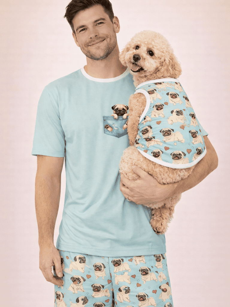 Pijama Divertido Pug Blue Masculino Verão