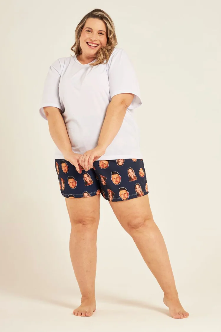 Apresentamos o nosso Short Personalizado com Foto - feito exclusivamente para você. Ele possui o tecido ideal, sem transparência, próprio para banho, dormir, passear. Tecido leve, macio e com pouco de elastano o que proporciona mobilidade e conforto. Presente perfeito para casais que se amam.