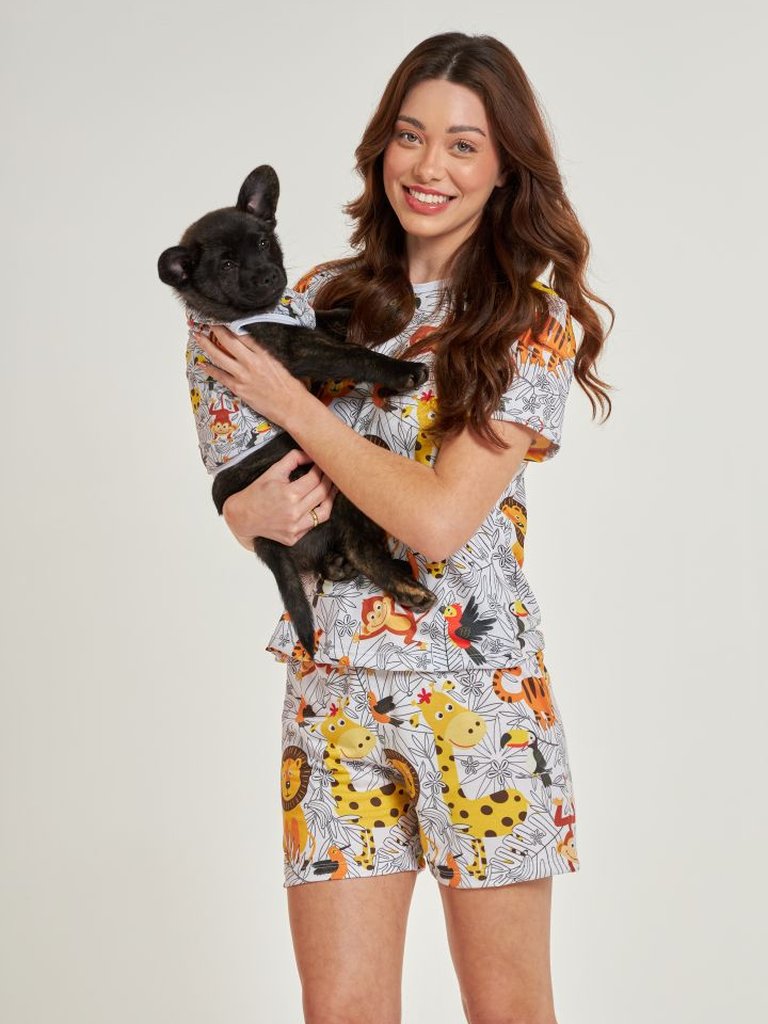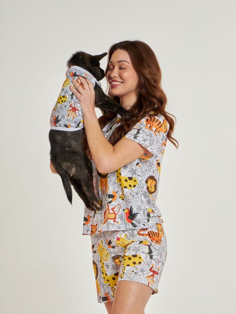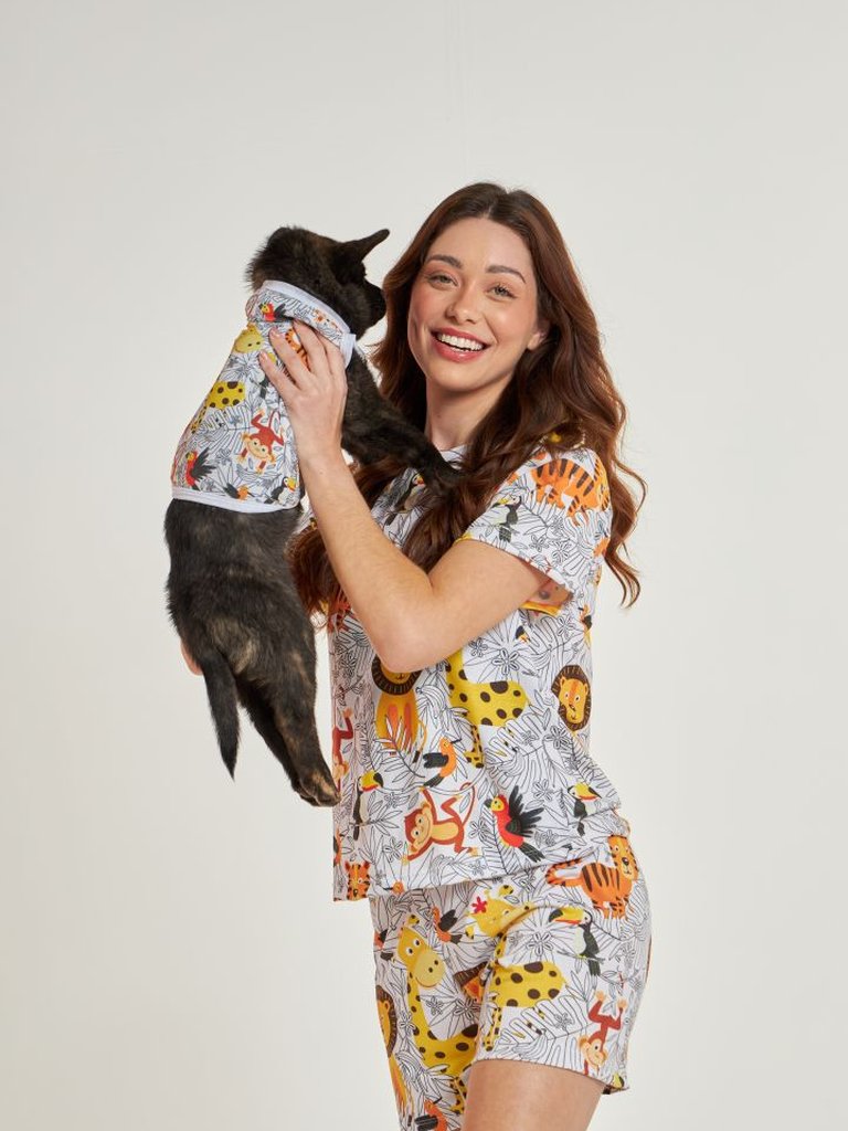 Tal Mãe Tal Pet Pijama Feminino Curto e Roupa Pet Selva Divertida