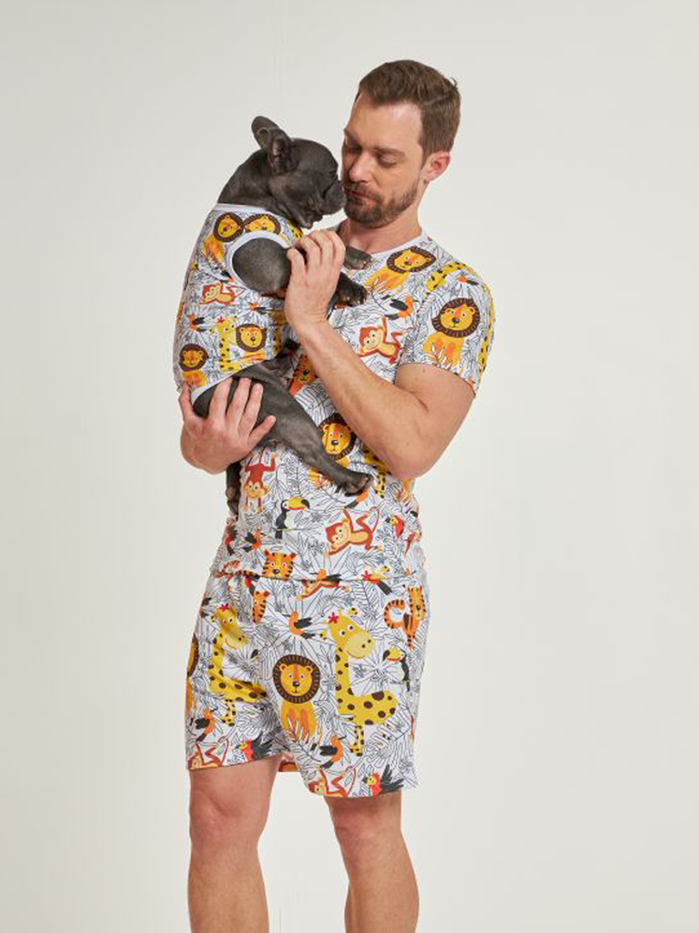 Tal Pai Tal Pet Pijama Masculino Curto e Roupa Pet Selva Divertida